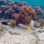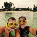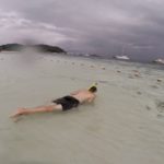 Leider gibt es hier keine schlechtwetter Beschäftigungen, ausser diverse Shops. Aber es ist alles sehr teuer und demzufolge haben wir hier fast nichts gekauft. Eigentlich wollten wir mit einem Paddelboot um die Insel fahren und die nahe gelegenen, grösseren Inseln anschauen gehen. Aber bei Regen und Wind, liessen wir dies bleiben. Stattdessen gingen wir schnorcheln, im Wasser wird man ja sowieso nass. Wir verschwammen uns quasi im einem Korallenriff in Strandnähe, so dass wir etwa eine halbe Stunde brauchten, bis wir den Ausweg wieder fanden ohne etwas zu beschädigen. Wegen der niedrigen Wassertiefe, ragte das Riff beinahe aus dem Wasser.